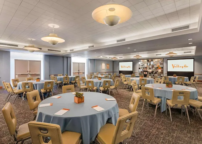 Offering a storage room and a restaurant, the spectacular Hotel Valley Ho lies in the shopping Old Town Scottsdale district, at 3.9 km distance from the 2704ft twin-humped Camelback Mountain and in 15 minutes' stroll of such cultural places of interest as the multi-gallery Scottsdale Museum of Contemporary Art. Featuring 241 rooms with views of the tower, the 4-star luxury hotel is set about 15 minutes' ride from the non-profit Phoenix Zoo.